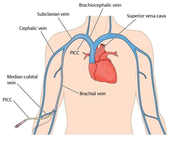 The superior vena cava (SVC) is the major blood vessel that receives blood from the upper part of the body and drains directly into the heart (right atrium). As it passes next to the lymph nodes in the chest and apices (upper part) of the right lung, the lung tumors in the apical area (such as Pancoast tumors) can put pressure on it and leads to the accumulation of backflow of blood in the vein. This backflow of the blood causes swelling and cyanosis (bluish discoloration) in the neck, face, upper chest, and arms.